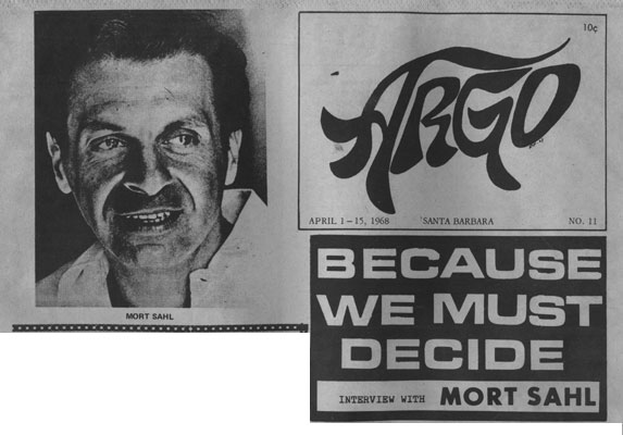 It's a sick society, and that's really the crux. That's why Garrison says this case is the crux of whether this country goes on or not. Is it an open society? Can the government tell you: "We know better what's good for you than you know for yourself"? And a lot of this has been incubated by the centralization of authority, which I'm sure the liberals will defend. They think it's a welfare program for Negroes. Hardly. The Federal government hasn't done anything good for anybody in quite a long time. You know, we ridicule our Ronald Reagans, and all. Mr. Reagan has to give somethig for the taxes. He has to give you Highway 99, or Highway 33, or 101. The Federal government doesn't have to give you anything, except a brainwash. When you think of the CIA bribing your brothers to turn you in, and you say, "Well, they've got an awful lot of money." An awful lot of money; it's ours! What do you mean they've got a lot of money? They're rag pickers. You know, and the American dream happens to be sticking to their pants legs like bicycle clips.ARGO: Who has approached Robert Kennedy on all of this?